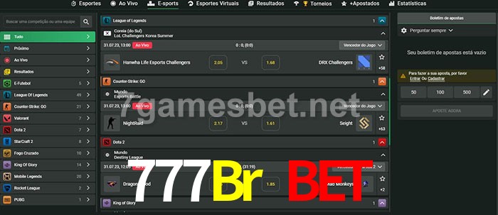 O 777Br Bet oferece uma grande seleção de opções de apostas em e-sports com probabilidades competitivas